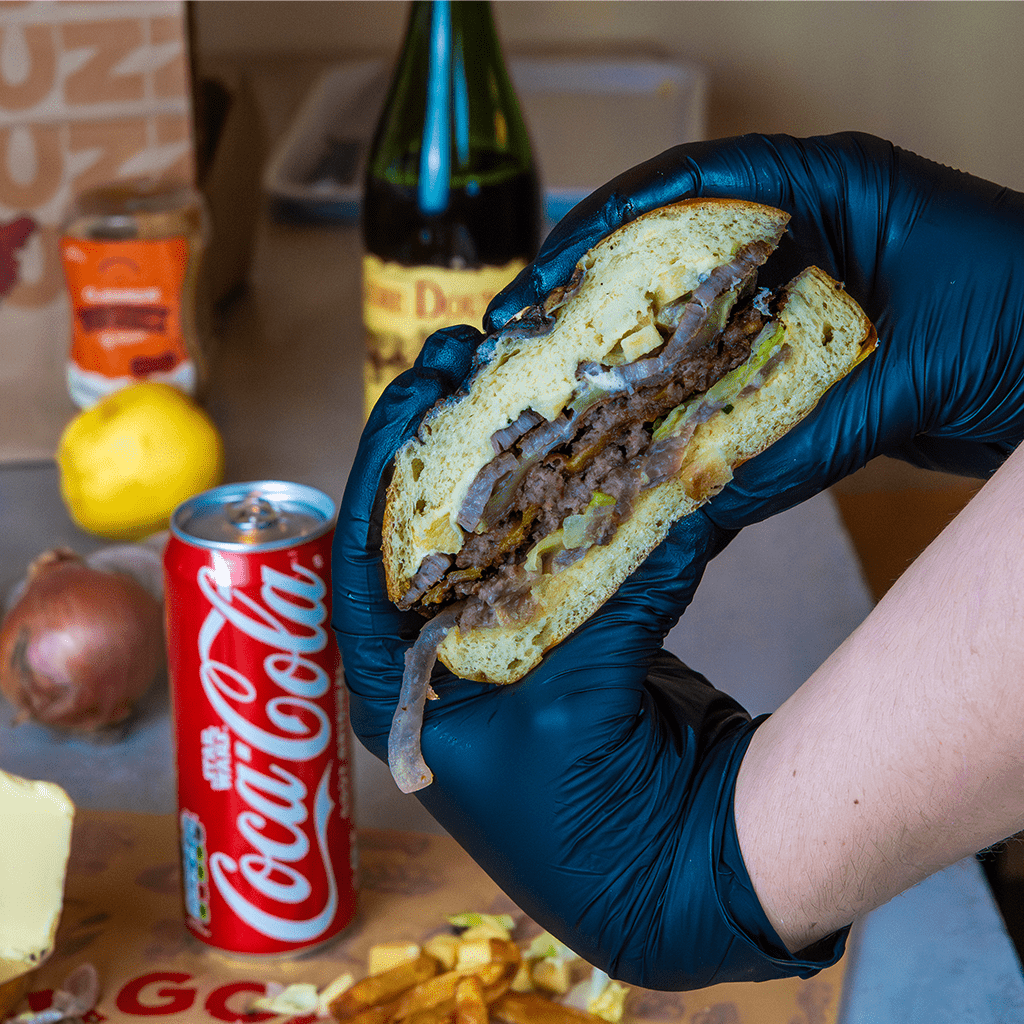 Nos steaks français sont sélectionnés avec soin pour leur composition, favorisant la réaction de Maillard, créant la délicieuse croûte croustillante caractéristique des burgers smashés Burgouzz.